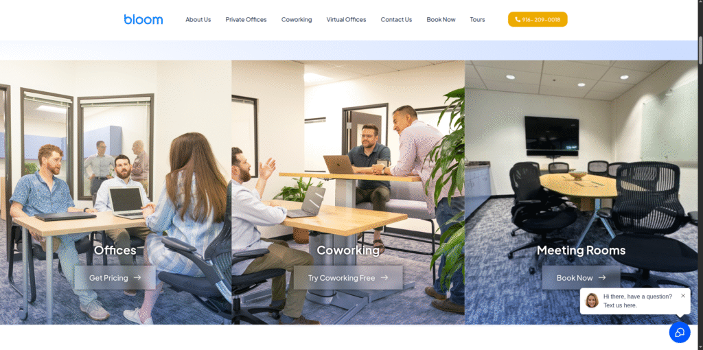 Bloom Workspaces delivers a flexible, community-driven coworking environment designed for Sacramento’s growing network of freelancers, entrepreneurs, and small teams. By combining modern workspace design with member-focused amenities, Bloom ensures professionals get a productive, distraction-free environment where comfort and collaboration come together naturally.