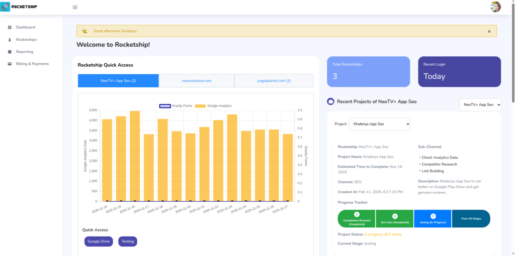 Rocketship was created to solve a frustrating reality. Teams were constantly switching between platforms hunting for data and trying to make sense of reports spread across different tools. Progress was happening but it was difficult to see measure or communicate. The goal was simple. Create one place where everything connects. Where tasks performance analytics and strategy live together in a clear structured environment. Every feature has been built around real agency challenges. From tracking SEO activities to monitoring campaign progress from managing billing to analyzing performance data Rocketship unifies it all into one reliable system. This is not only about seeing numbers. It is about giving your data meaning direction and purpose so you always know what is working and what to do next.